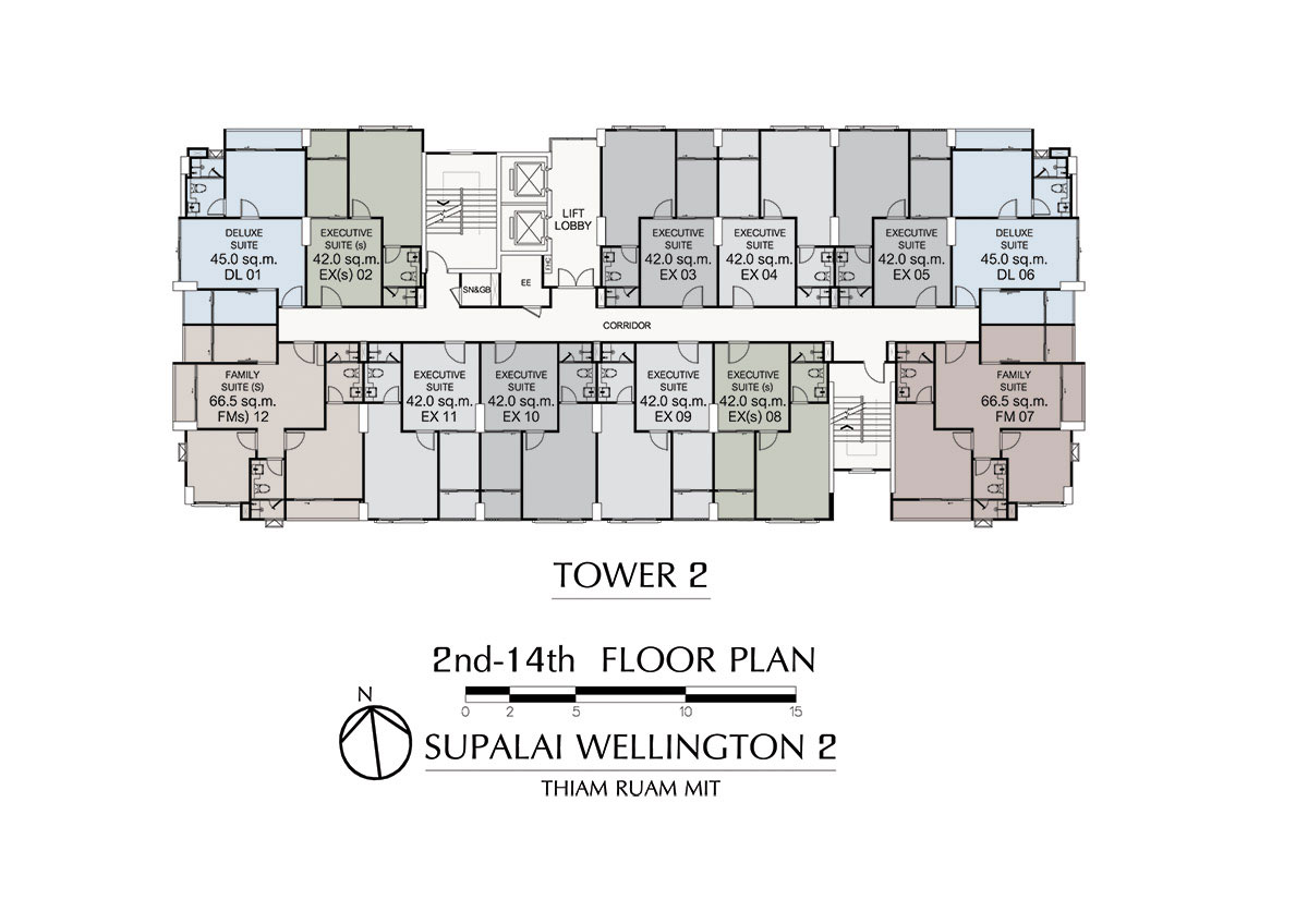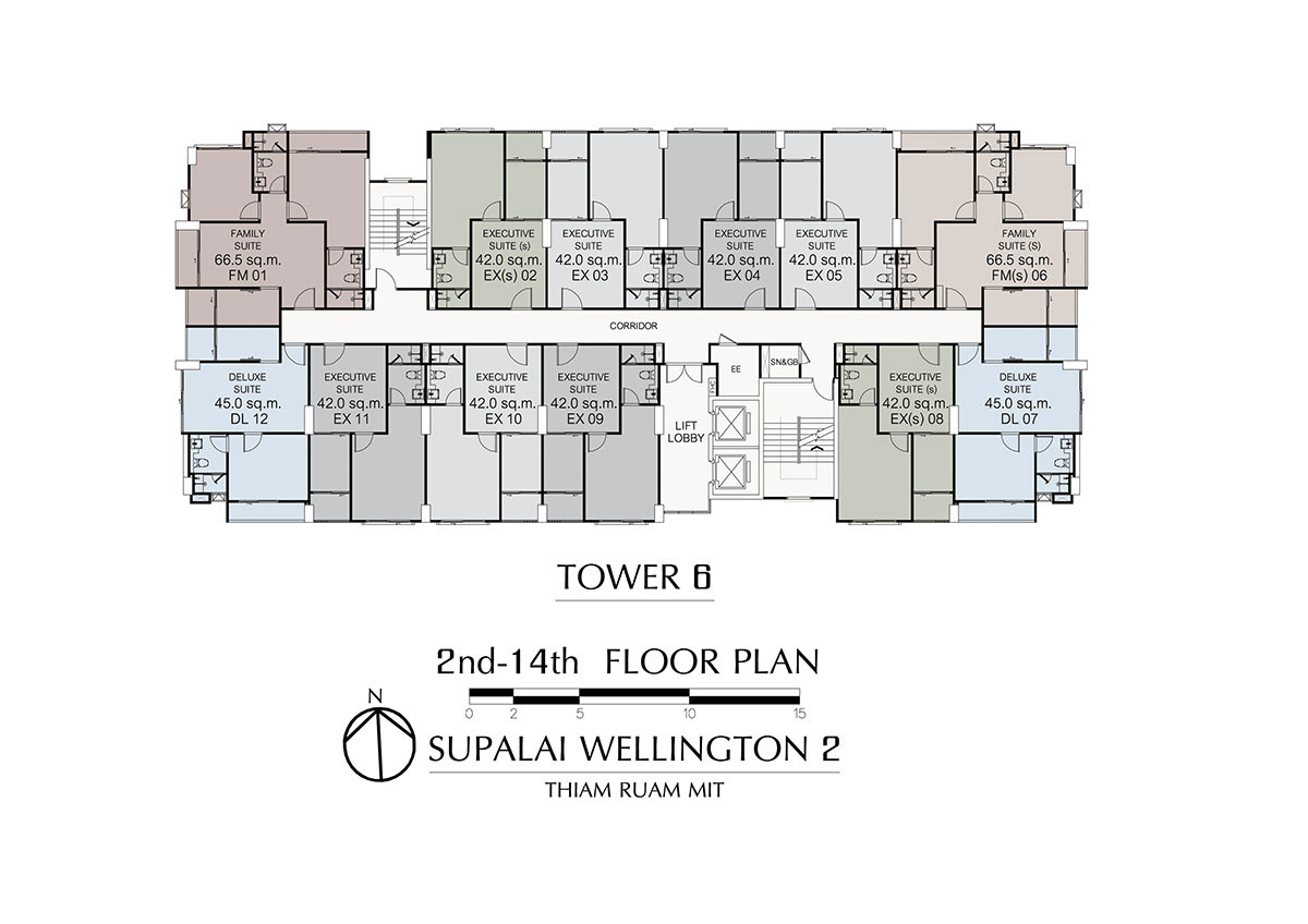 Layout ห้องแบบ 2 ห้องนอน FAMILY SUITE (S) ขนาด 66.5 ตร.ม.