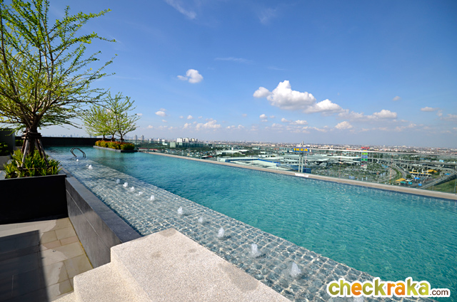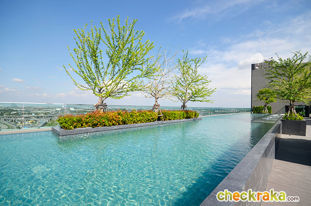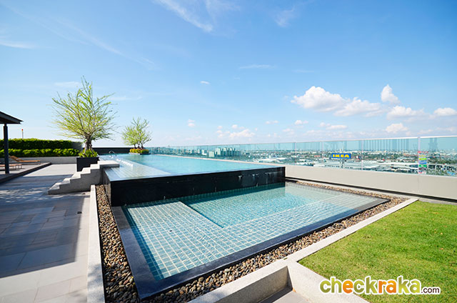 - สระว่ายน้ำลอยฟ้าแบบ Infinity Edge Pool ขนาด 6.2 x 35 เมตร ที่ชั้นดาดฟ้า