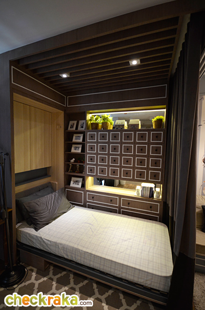 เตียงนอนขนาด 3.5 ฟุต แบบพับเก็บได้ และสามารถปรับเปลี่ยนพื้นที่จุดนี้ให้เป็นพื้นที่สำหรับทำงานแทนก็ยังได้