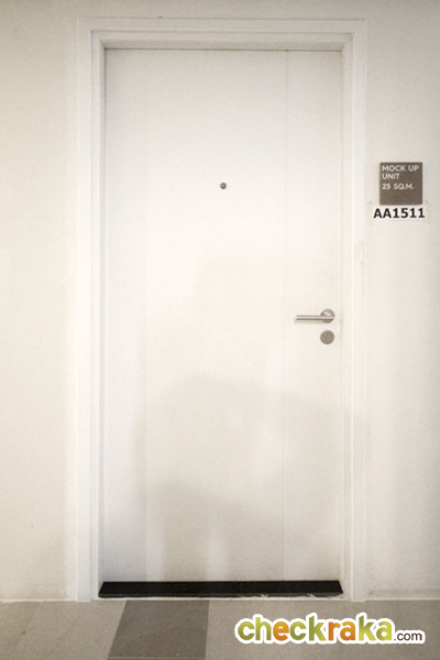 สำหรับห้องตัวอย่างในโครงการคือห้อง 1 Bedroom ขนาด 25 ตารางเมตร โดยทางโครงการจะขายห้องแบบ Fully Fitted คือมีการตกแต่งและแถมเฟอร์นิเจอร์ให้บางส่วน อาทิ แอร์, ตู้เสื้อผ้า และชุดเคาน์เตอร์ครัว โดยเราจะพาไปชมทั้งห้องจริงที่ส่งมอบให้ลูกค้า (แบบยังไม่ได้ตกแต่ง) และห้องที่ทางโครงการตกไว้ให้ดูเป็นไอเดีย