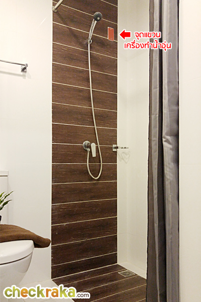 ฝักบัว และก๊อกน้ำ ของ American Standard ไม่มีเครื่องทำน้ำอุ่นให้ แต่ติดตั้งจุดสำหรับแขวนเครื่องทำน้ำอุ่นมาให้