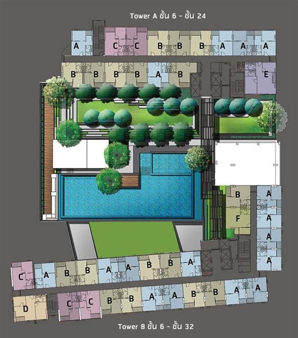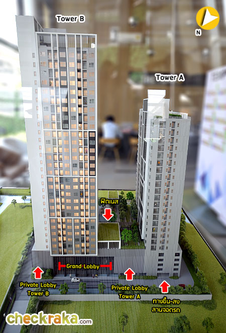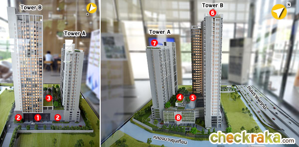 - ลิฟต์โดยสาร Tower A 3 ตัว และ Tower B 4 ตัว