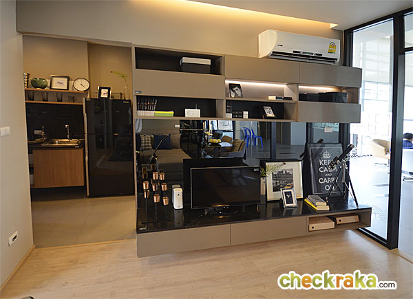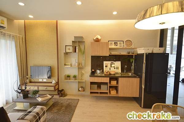 เข้ามาในห้องทางด้านขวาจะเป็นครัวแบบเปิด ซึ่งอาจจะเหมาะสำหรับคนที่ไม่เน้นการทำครัวมากนัก