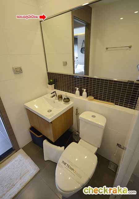 พร้อมตู้เก็บของใต้อ่าง และกระจกโมเสค ยกเว้นกรอบอลูมิเนียมเท่านั้นที่ทางโครงการไม่ได้ให้มา