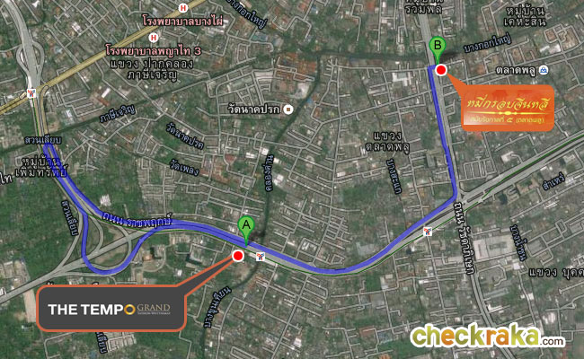 แผนที่เส้นทางการเดินทาง จากโครงการไปร้านเต็กเฮง