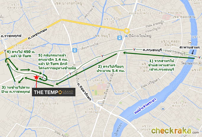มาจากถนนสาทรใต้มุ่งหน้าสะพานสมเด็จพระเจ้าตากสินฯ ให้ตรงไปโดยยึดป้ายสะพานสมเด็จพระเจ้าตากสินค่ะ