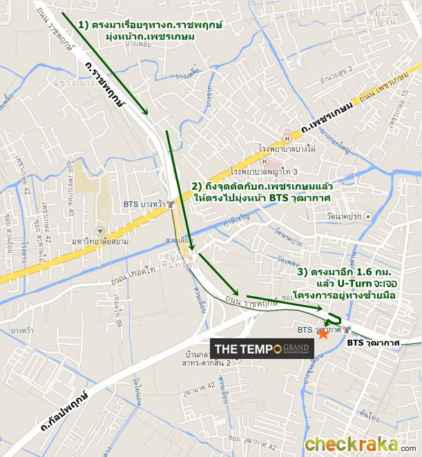 ตัวอย่างการเดินทางจากรถไฟฟ้า BTS สถานีวุฒากาศ มาโครงการ