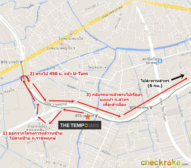 เดี๋ยวเรามาดูการเดินทางจากแยกถนนสาทรมาถึงตัวโครงการ เดอะ เทมโป แกรนด์ สาทร-วุฒากาศ กันค่ะ ครั้งแรกอาจจะดูงงนิดนึง แต่รับรองว่าขับครั้งเดียวก็หายงงแล้วล่ะค่ะ