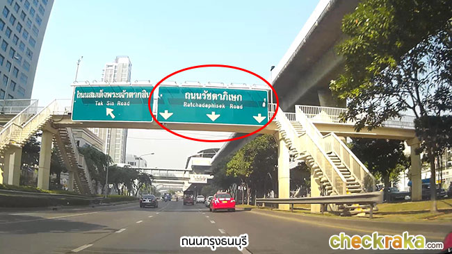 พอลงสะพานมาจะเข้าถนนกรุงธนบุรีให้ตรงไปเรื่อยๆโดยยึดป้ายถนนรัชดาภิเษก