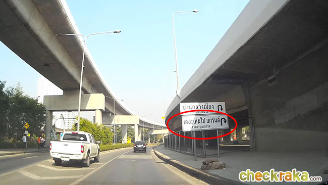 พอลงสะพานมาให้ออกซ้ายตามป้ายถนนเทอดไท