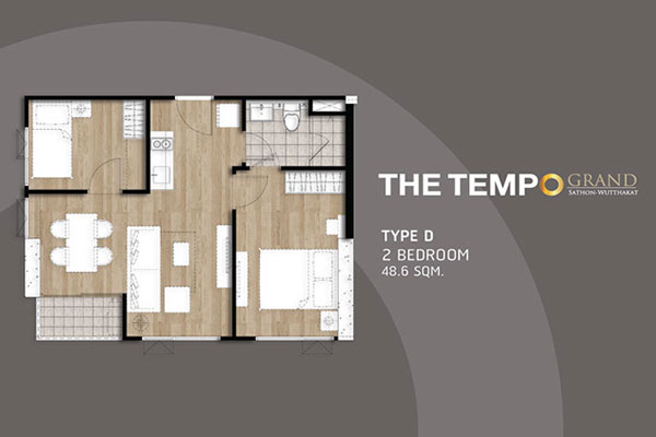ขนาด 48.6 ตร.ม. (Sold Out) - ห้อง 2 ห้องนอน แบบ Type E