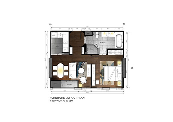 ภายในห้องประกอบด้วยเฟอร์นิเจอร์แบบลอยตัวที่โครงการให้มาเหมือนกับห้องนอนไซส์ 60 ตร.ม. ค่ะ