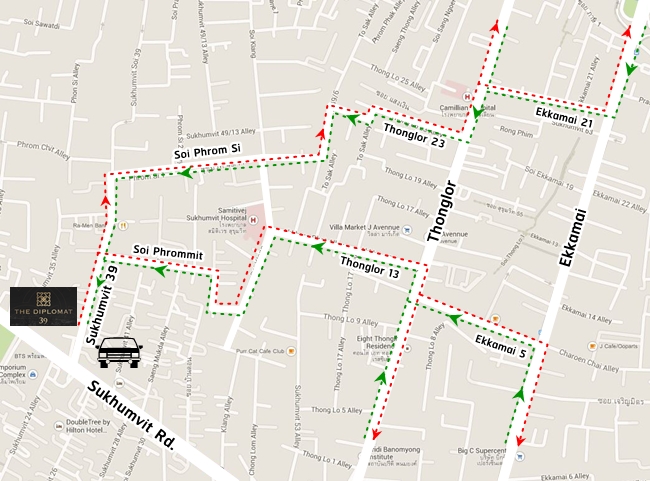 ตัวอย่างเส้นทางที่ 4 - เข้าออกทางทองหล่อ-เอกมัย (4nd Inbound and Outbound Route to/from The Diplomat 39 via Thonglor and Ekkamai roads)