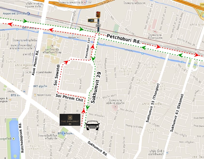 ตัวอย่างเส้นทางที่ 3 - เข้าออกทางถนนเพชรบุรี (3nd Inbound and Outbound Route to/from The Diplomat 39 via Petchaburi road)