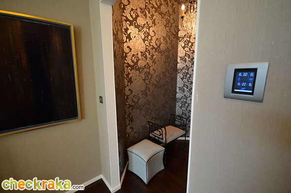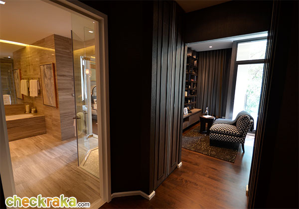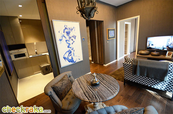 - แบบห้องและวัสดุ: โดยหลักๆ โครงการนี้มียูนิตให้เลือก 5 แบบคือ 1 ห้องนอน 2 ห้องนอน 3 ห้องนอน Duplex และสุดท้ายคือ Penthouse แบบห้องและ Layout ในแต่ละยูนิตโดยรวมค่อนข้างลงตัว และมีพื้นที่เหลือเฟือเพราะขนาดเริ่มต้น 1 ห้องนอนคือ 54 ตร.ม. มาพร้อมกับความสูงจากพื้นถึงฝ้าเพดานที่ 3 เมตร และสำหรับขนาดห้องตั้งแต่ 60 ตร.ม. ขึ้นไปก็มีการดีไซน์โถงทางเข้าห้องให้เป็น Foyer แปดเหลี่ยมให้อารมณ์เหมือนบ้านเมื่อเปิดประตูยูนิตเข้ามา ห้องที่ขายจะเป็น Fully Fitted มาพร้อมกับเฟอร์นิเจอร์ที่ติดกับห้อง เช่น วอลล์เปเปอร์ ตู้เสื้อผ้า แอร์ อุปกรณ์ห้องน้ำ ตู้ทีวี และ Pantry ครัว เป็นต้น วัสดุที่ให้มาค่อนข้างเป็นเกรดดี เช่น อุปกรณ์ทำครัวยี่ห้อ Kuppersbusch วัสดุห้องน้ำยี่ห้อ Kohler กุญแจ Digital Lock ของยี่ห้อ Yale พื้นห้องเป็นแบบ Engineering Wood เป็นต้น