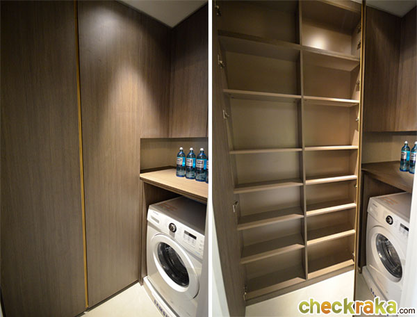 ซ้ายมือของห้องครัว จะเจอกับห้องเก็บของเล็กๆ เพิ่ม space สำหรับเก็บอุปกรณ์เกี่ยวกับการซักผ้า