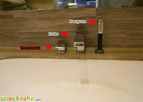 ทางด้านของอ่างอาบน้ำก็มีระบบ Thermostatic ที่เป็นตัวปรับอุณหภูมิความร้อนของน้ำ, หัวก๊อกเป็นตัว Top