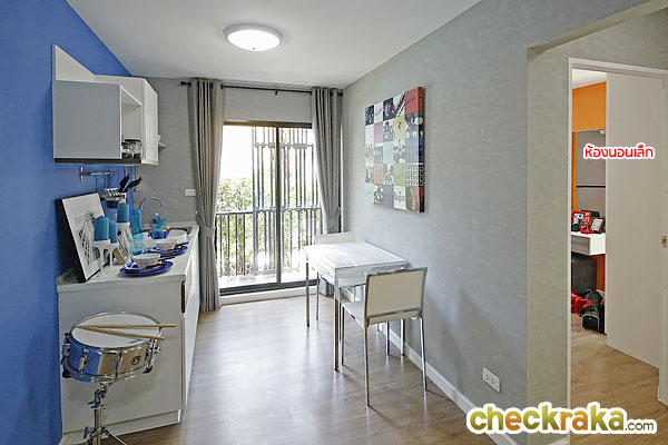 ย้ายมาดูด้านหน้าห้องนอนเล็กจะเชื่อมต่อกับระเบียงใช้งานซึ่งอยู่ระหว่างห้องนอนเล็กกับห้องน้ำ