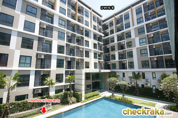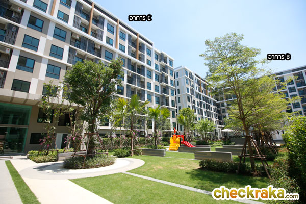 - อาคารและตัวโครงการโดยรวม - เป็นอาคาร Low-Rise ความสูง 8 ชั้น มีทั้งหมด 3 อาคาร โดยอาคาร A จะออกแบบเป็นรูปตัว I ส่วนอาคาร B และ C จะออกแบบเป็นรูปตัว L ที่สร้างโอบล้อม Facility และ Club House ซึ่งจะตั้งอยู่ตรงกลางของโครงการบริเวณชั้น G เอาไว้ โดยข้อดีคือห้องที่หันหน้าเข้าด้านในโครงการของทุกตึกสามารถชมวิวส่วนกลางได้เหมือนกัน ส่วน Facility มาตรฐานทางโครงการให้มาพอสมควร ซึ่งก็มี Club House, สระว่ายน้ำ, ห้องฟิตเนส, สวนขนาดใหญ่, Wi-Fi Internet พร้อม Mailbox และ รปภ. รักษาความปลอดภัยแยกแต่ละอาคาร จำนวนยูนิตต่อชั้นสูงสุดอยู่ที่ 27 ยูนิต ถือว่าค่อนข้างใช้ได้ แต่ละอาคารจะมีลิฟต์โดยสารอาคารละ 2 ตัว ไม่มีลิฟต์ขนของ อัตราส่วนการใช้ลิฟต์จะเฉลี่ยอยู่ที่ประมาณ 94 ยูนิตต่อลิฟต์ 1 ตัว ซึ่งถือว่าค่อนข้างโอเคทีเดียว แต่ในชั่วโมงเร่งด่วนก็อาจต้องรอนานหน่อย ส่วนปริมาณที่จอดรถอยู่ที่ 36% (แบบรวมจอดซ้อนคัน) อาจจะน้อยไปหน่อยถ้ามีการใช้รถยนต์กันเยอะ