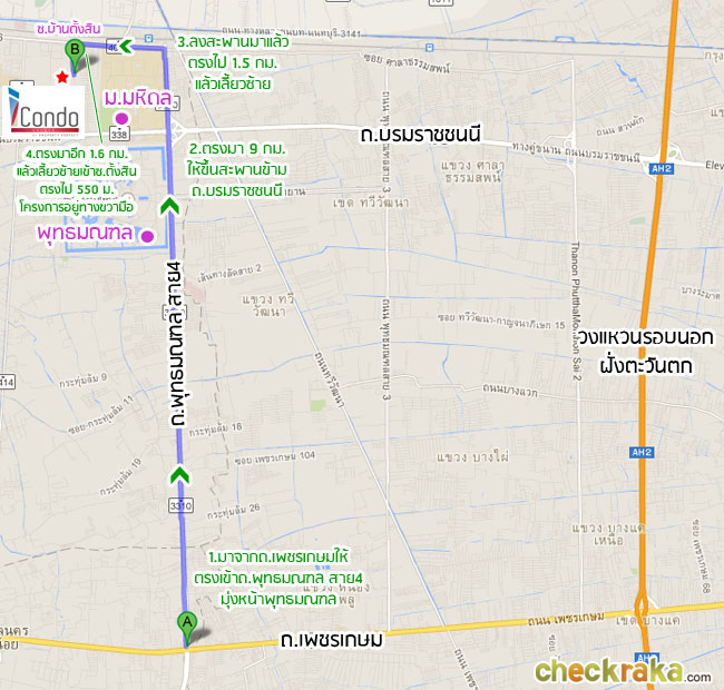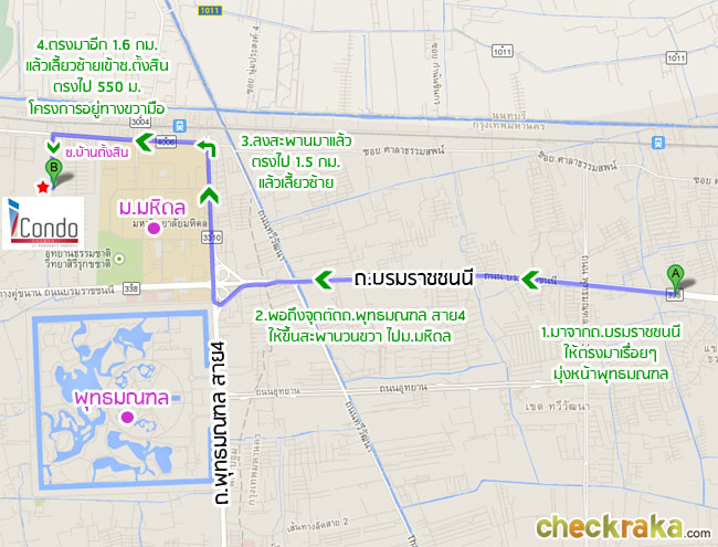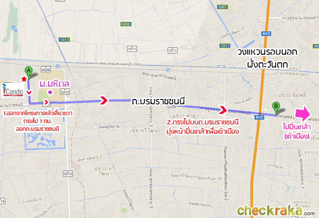 เดี๋ยวเรามาดูการเดินทางจากทางคู่ขนานลอยฟ้าบรมราชชนนีถึงตัวโครงการ ไอ คอนโด ศาลายา กันค่ะ