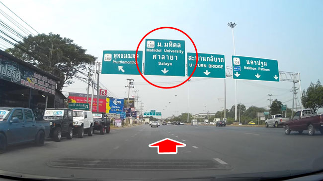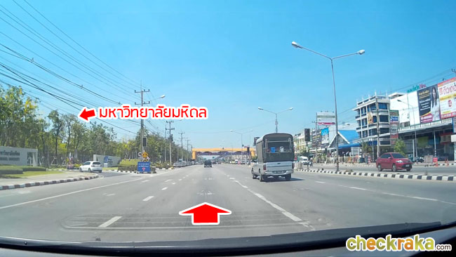 จะมีสะพานวนขวาเพื่อข้ามไป ม.มหิดลศาลายา ให้เราวนไปตามทางได้เลย