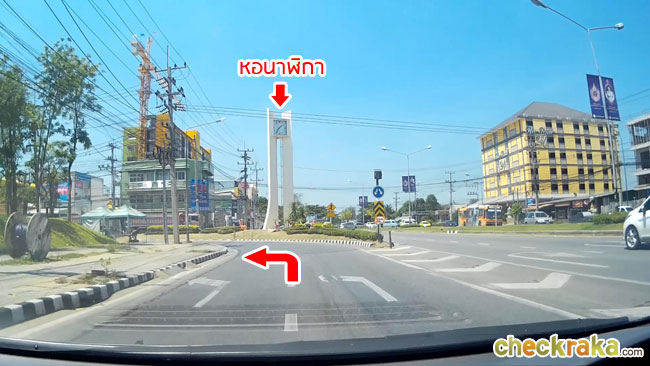 ตรงไปอีก 1.5 กม. สุดทางจะเป็นหอนาฬิกา ให้เลี้ยวซ้ายไปตามทางค่ะ