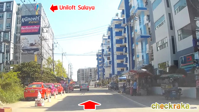 ตรงเข้าซอยมาเรื่อยๆ จะเห็น Uniloft Salaya อยู่ทางซ้ายมือค่ะ