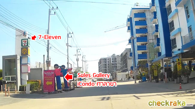 ถัดมาก็จะมี 7-Eleven และ Sales Gallery ของ iCondo ศาลายา อยู่ทางซ้ายมือ