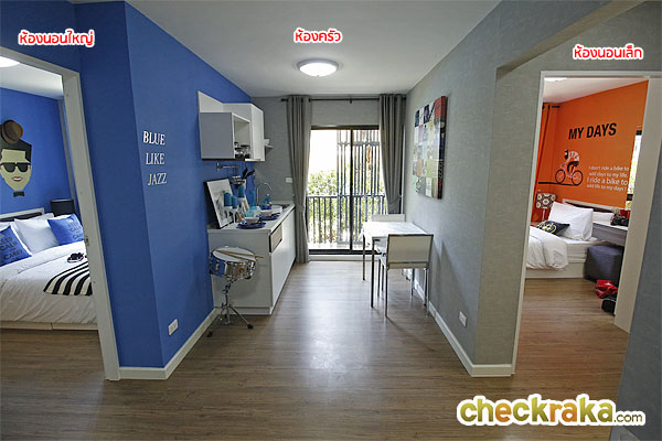 - รูปแบบห้องและวัสดุ - ลักษณะห้องพักอาศัยแบ่งเป็น 3 Type หลักด้วยกัน แบบ 1 ห้องนอน และ 2 ห้องนอน โดยทั้ง 2 ห้องออกแบบฟังก์ชั่นการใช้งานมาค่อนข้างครบ แต่ก็ยังมีบางจุดที่อาจจะไม่ค่อยสะดวกมากนัก โดยแบบ 1 ห้องนอน การใช้จริงในส่วนของพื้นที่ทานข้าวอาจไม่ค่อยสะดวกนัก แต่ก็มีข้อดีอยู่ตรงที่ได้ครัวเป็นแบบครัวปิด และยังติดระเบียงช่วยเรื่องระบายกลิ่นได้ดี ส่วนแบบ 2 ห้องนอน จะติดก็ตรงห้องน้ำนิดหน่อยตรงตำแหน่งของโถสุขภัณฑ์ ที่เวลาเปิดประตูเข้ามาอาจจะชนกับโถสุขภัณฑ์ได้ แต่ห้องนี้ก็มีข้อดีตรงที่จะได้พื้นที่ห้องครัวขนาดใหญ่ มีที่วางตู้เย็นได้อย่างสบายๆ แต่ว่าเป็นแบบครัวเปิดนะคะ ถ้าทางโครงการกั้นกระจกทำเป็นครัวปิดมาให้ลูกบ้านด้วยก็น่าจะดี
