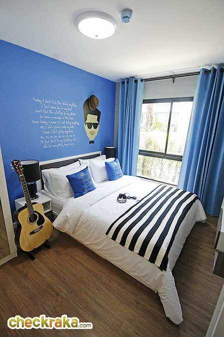 เข้ามาดูในห้องนอนกันบ้างค่ะ ภายในห้องนี้ได้เตียงแบบ 5 ฟุต ด้านข้างยังมีพื้นที่เหลือพอให้วางโต๊ะข้างเตียง