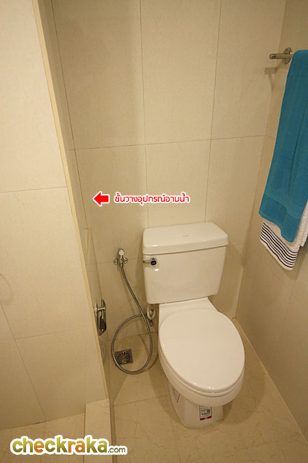 ข้างโถสุขภัณฑ์มีพื้นที่สำหรับวางอุปกรณ์อาบน้ำมาให้