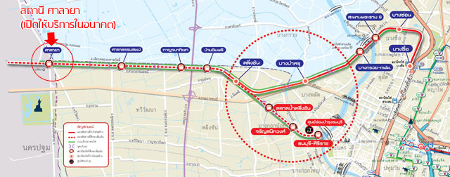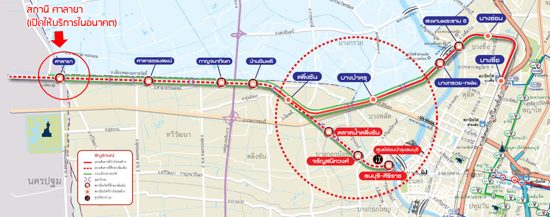 เส้นทางเดินรถไฟฟ้าสายสีแดงอ่อน (ส่วนต่อขยายศาลายา-ตลิ่งชัน) (คลิกเพื่อดูภาพขยาย)