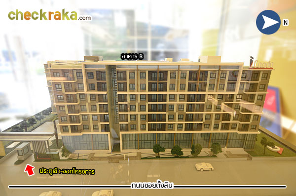 โมเดลโครงการมุมมองจากทิศตะวันออก ติดถนนซอยตั้งสิน ฝั่งตรงข้ามกับหน้าโครงการก็ยังคงเป็น
