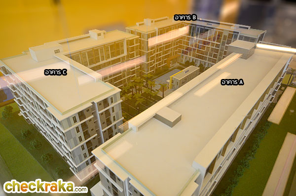 - อาคารและตัวโครงการโดยรวม - เป็นอาคาร Low-Rise ความสูง 8 ชั้น มีทั้งหมด 3 อาคาร โดยอาคาร A จะออกแบบเป็นรูปตัว I ส่วนอาคาร B และ C จะออกแบบเป็นรูปตัว L ที่สร้างโอบล้อม Facility และ Club House ซึ่งจะตั้งอยู่ตรงกลางของโครงการบริเวณชั้น G เอาไว้ โดยข้อดีคือห้องที่หันหน้าเข้าด้านในโครงการของทุกตึกสามารถชมวิวส่วนกลางได้เหมือนกัน ส่วน Facility มาตรฐานทางโครงการให้มาพอสมควร ซึ่งก็มี Club House, สระว่ายน้ำ, ห้องฟิตเนส, สวนขนาดใหญ่, Wi-Fi Internet พร้อม Mailbox และ รปภ. รักษาความปลอดภัยแยกแต่ละอาคาร จำนวนยูนิตต่อชั้นสูงสุดอยู่ที่ 27 ยูนิต ถือว่าค่อนข้างใช้ได้ แต่ละอาคารจะมีลิฟต์โดยสารอาคารละ 2 ตัว ไม่มีลิฟต์ขนของ อัตราส่วนการใช้ลิฟต์จะเฉลี่ยอยู่ที่ประมาณ 94 ยูนิตต่อลิฟต์ 1 ตัว ซึ่งถือว่าค่อนข้างโอเคทีเดียว แต่ในชั่วโมงเร่งด่วนก็อาจต้องรอนานหน่อย ส่วนปริมาณที่จอดรถอยู่ที่ 36% (แบบรวมจอดซ้อนคัน) อาจจะน้อยไปหน่อยถ้ามีการใช้รถยนต์กันเยอะ