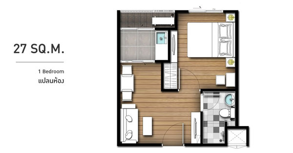 ขนาด 27.00 ตร.ม. ราคาเริ่มต้นประมาณ 1.63 ล้านบาท - ห้อง 2 ห้องนอน