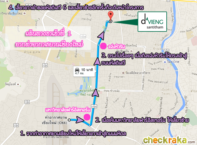 เซ็นทรัลพลาซา เชียงใหม่ แอร์พอร์ต ห่างจากโครงการประมาณ 4 กิโลเมตร