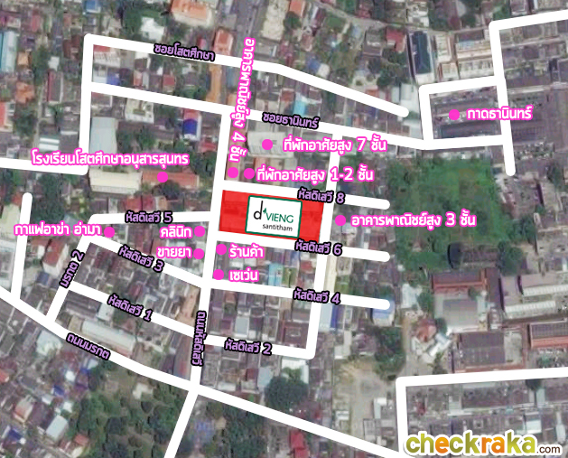- ทำเลรอบโครงการ - รอบๆ โครงการมีครบทั้งร้านสะดวกซื้อ ร้านขายของชำ ร้านขายยา ขายอาหาร และคลินิกเวชกรรม ถือว่าสะดวกมากค่ะ หรือถ้าหากอยากจะทำอาหารเองหรืออยากซื้ออาหารสำเร็จรูปก็ไปที่กาดธานินทร์ได้ห่างจากโครงการเพียง 350 เมตรเท่านั้น ถ้าหากอยากจะเดินห้างที่ใกล้ๆ เลยก็คือเซ็นทรัล กาดสวนแก้ว ห่างจากโครงการ 2 กม. โดยรวมแล้วก็ถือว่าอุดมสมบูรณ์เหมาะกับผู้ที่ทำงานในเมืองเชียงใหม่ และผู้ที่หลงใหลในศิลปวัฒนธรรมล้านนาแต่ยังใช้ชีวิตแบบคนในเมืองค่ะ