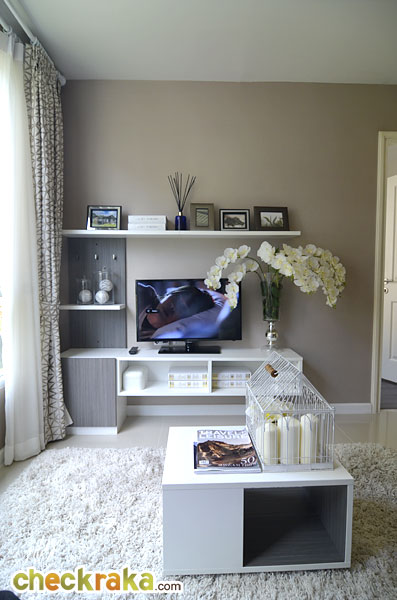 ชั้นวางทีวีได้ตามนี้ ส่วนระยะดูทีวีจะสั้นกว่าห้อง Studio นิดหน่อย