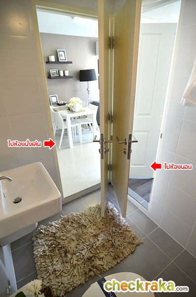 ห้องน้ำของห้องนี้เป็นแบบ Double access นะคะ เข้าออกได้ 2 ทางทั้งจากห้อง Living Area และทางห้องนอน