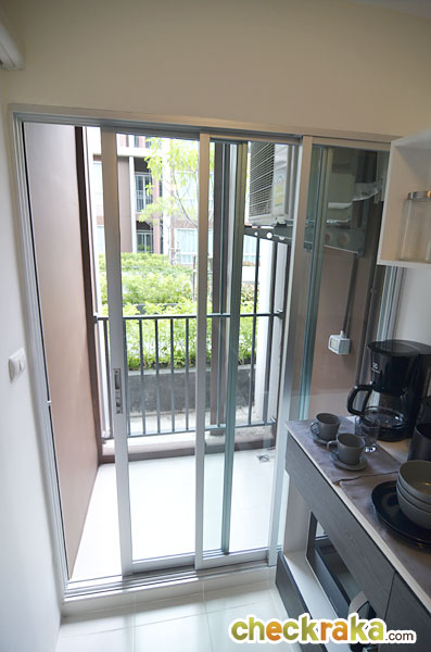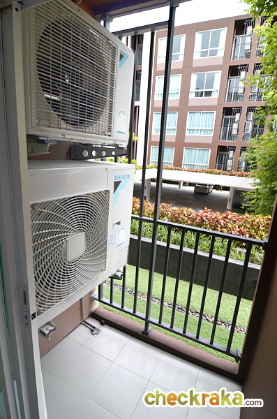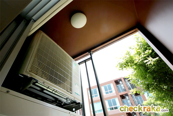 คอมเพรสเซอร์แอร์ติดด้านซ้ายของระเบียงเป่าลมเข้าระเบียงทำให้มุมนี้อาจจะร้อนบ้าง
