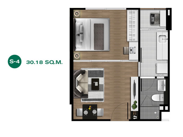 ขนาด 29.98 - 30.36 ตร.ม. ราคาประมาณ 1.3 - 1.5 ล้านบาท - ห้องแบบ 1 ห้องนอน