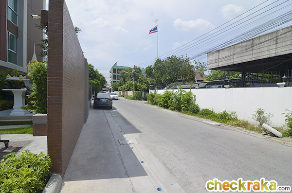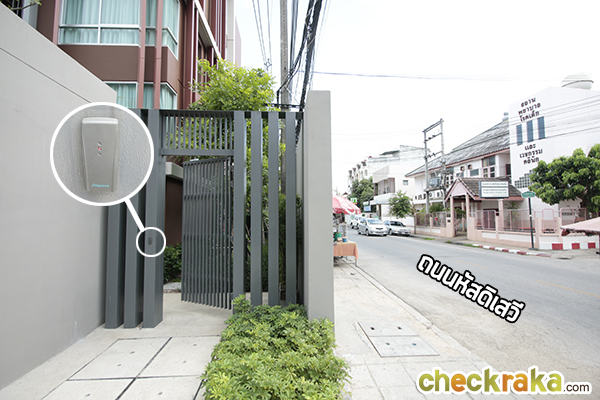ถนนหัสดิเสวีเป็นถนนที่ค่อนข้างคึกคัก ส่วนใหญ่จะเป็นอาคารพาณิชย์ ร้านค้า และร้านอาหารตลอดทั้งเส้น แต่เนื่องจากถนนนี้เป็นถนนสวนกัน 2 เลน หากมีรถจอดที่ข้างถนนอาจจะเกิดปัญหาจราจรติดขัดได้ค่ะ ดังนั้นทางโครงการจึงได้นำประตูหน้าไปไว้ที่ด้านในหัสดิเสวี ซอย 9 เพื่อหลีกเลี่ยงปัญหานี้ ส่วนสภาพแวดล้อมจะเป็นอย่างไรนั้นเดี๋ยวเราไปเดินดูกันเลยค่ะ