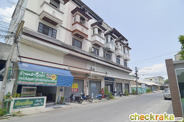 เดินออกมาประตูหน้าโครงการมองไปทางขวามือจะเจออาคารพาณิชย์สูง 3 ชั้น ยูนิตหน้าโครงการเป็นร้านขายอาหารด้วยค่ะ