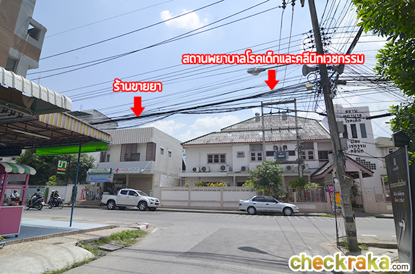 เดินมาเรื่อยๆ ก็จะบรรจบกับถนนหัสดิเสวี ด้านหน้าของเราจะเป็นสถานพยาบาลโรคเด็กและคลินิกเวชกรรม