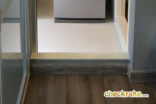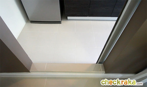 ก่อนเข้าห้องครัวจะมีธรณีประตูยกขึ้นค่อนข้างสูง หมดกังวลเรื่องน้ำที่จะไหลออกมาด้านนอกห้องครัว