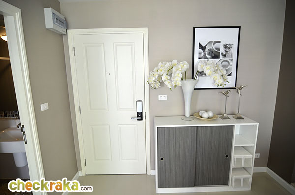 - รูปแบบห้องและวัสดุ - ลักษณะห้องพักอาศัยแบ่งเป็น 3 Type หลักด้วยกัน ตั้งแต่ Studio - 2 ห้องนอน โดยฟังก์ชั่นการจัดวางโดยรวมทำออกมาได้ค่อนข้างโอเค โดยห้อง Studio ขนาดประมาณ 30 ตร.ม. มีกระจกกั้นห้องมาให้ด้วยเสมือนซึ้อห้อง Studio แต่ได้ห้องแบบ 1 ห้องนอน แต่ส่วนพื้นที่ทานข้าวอาจจะดูเล็กไปหน่อย อาจต้องระวังเวลาที่เปิดประตูเข้าออก ส่วนแบบ 1 ห้องนอน ขนาดประมาณ 37 ตร.ม. จัดวางพื้นที่ใช้สอยได้ดีทำให้ห้องดูกว้าง และใช้งานได้จริง ซึ่งมาพร้อมกับห้องน้ำแบบ Double access ที่เข้าออกได้ 2 ทางเพิ่มความสะดวกในการใช้งานทั้งจากห้องนอน และห้องนั่งเล่น วัสดุที่ทางโครงการให้มาถือว่าดีกว่ามารฐานคอนโดทั่วไปไม่ว่าจะเป็น ประตูแบบ Digital Door Lock หรือเคาน์เตอร์ครัวแบบหินสังเคราะห์