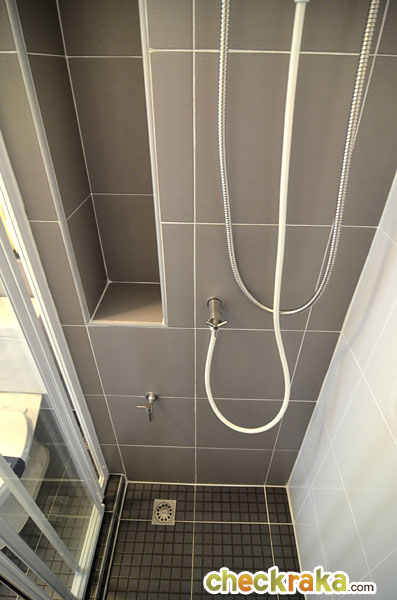 ฝักบัวตามแบบนี้ ทางโครงการเซาะร่องผนังไว้สำหรับเป็นพื้นที่วางอุปกรณ์อาบน้ำมาให้