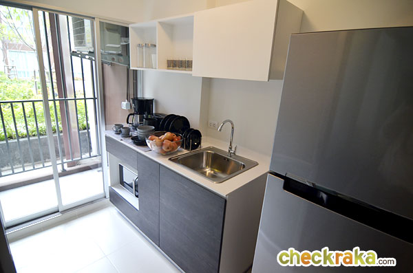 เคาน์เตอร์ครัวมีขนาดพื้นที่ใหญ่และกว้างกว่าห้อง Studio พอสมควรเลยค่ะ