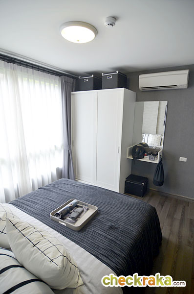 ส่วนตู้เสื้อผ้า และโต๊ะเครื่องแป้งของห้องนี้จะอยู่บริเวณด้านข้างของเตียงนอนค่ะ