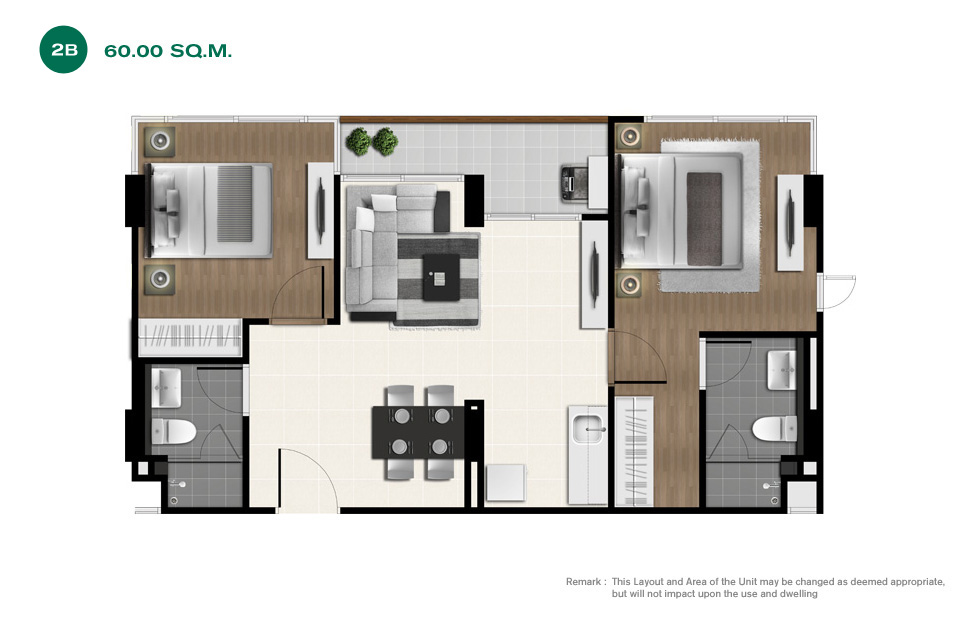 ขนาด 60 ตร.ม. ราคาประมาณ 2.6 - 2.8 ล้านบาท